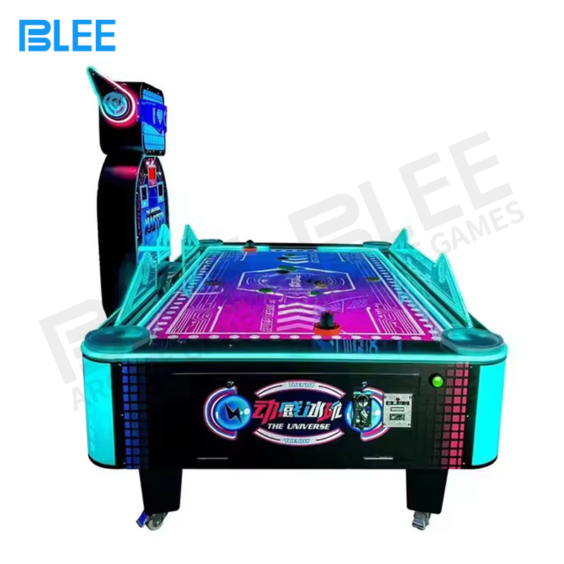 | Features | 1. Table top curved design, air flout, smooth game play atmosphere. 2. Unique light system, led special light bar in the surface of the frame. 3.Players can know each other score in time. Wind blow machine sound proof, maximum decrease the wind sound. |